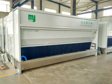 濕式除塵箱主要針對工業(yè)打磨,如石材、金屬、陶瓷、碳纖維制品、玻璃鋼、塑料制品等的打磨、拋光及注料口產(chǎn)生的飄揚粉塵進(jìn)行除塵處理,有效改善車間生產(chǎn)環(huán)境。本產(chǎn)品內(nèi)部結(jié)構(gòu)系本公司專利產(chǎn)品,動力采用靜音風(fēng)機(jī),具有吸力強(qiáng),噪聲小(≤75db)、能耗低、使用壽命長等特點,過濾部分采用PVC過濾材料,過濾效率高,不堵塞、不老化、免更換、降低維修成本,同時過濾材料過濾層表面設(shè)有水噴淋裝置,形成水幕,在過濾材料和水幕的同時過濾作用下,吸入的粉塵隨水幕落入到水槽中,達(dá)到除塵的目的。